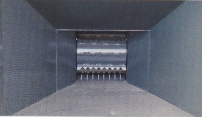 Materiál je ručně vkládán k válcům přes plnicí otvor. Plnění je ovládáno přes elektrická tlačítka umístěná na obou stranách plnicího otvoru. Tvar plnicího otvoru kopíruje žlutý ochranný rám, a pokud dojde k jeho stlačení, podávací mechanizmus se zastaví. Materiál se následně dostává ke dvěma hydraulickým válcům (spodnímu a hornímu), které usnadňují vkládání, pracují se stejnou obvodovou rychlostí a zajišťují rovnoměrnou kvalitu štěpky. V případě ucpání je možné použít zpětný chod pro snadné vyčištění. Spodní podavač je umístěn vodorovně se spodní hranou násypky. Vrchní válec se snaží materiál zmáčknout k sobě. Součástí standardní výbavy je i ochrana rotace „No Stress“. Štěpkovač Junkkari může produkovat materiál různé frakce včetně jemnější, záleží na nastavení vzdálenosti nožů od disku. Na přání je možné disk provozovat pouze se dvěma noži doplněnými krycí deskami. Tato dvounožová verze je uplatnitelná v kombinaci s traktorem o nižším výkonu. K výbavě na přání patří i lamač štěpky, jenž se montuje na nože. Zajišťuje stejnou velikost štěpky v případě, že se štěpkují malé a tenké větvičky.